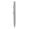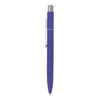 Metal. Cuerpo de aluminio, acabado engomado en diferentes colores, muy suave al tacto. Bolígrafo retráctil. Clip, pulsador y anillo metálicos color plata. Tinta negra. Destape al grabar color plata.