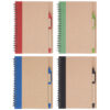 13,8 x 18 x 1,5 cm Elaborada con papel reciclado. Incluye bolígrafo biodegradable. Espiralado. Contiene 70 hojas lisas.