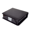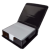 Porta taco SIN calendario sobre tapa, provee dos tacos tipo post-it. Material simil cuero. Dimensiones: 9,5cm x 9,5cm x 3cm.